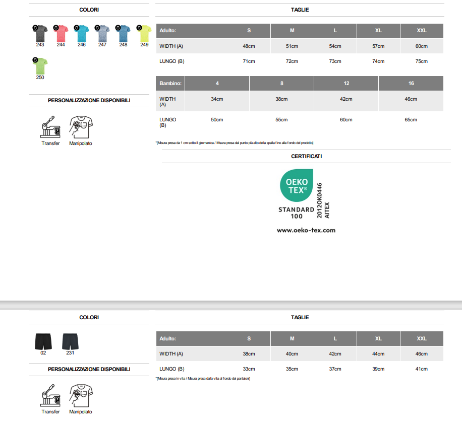 T-shirt tecnica in poliestere, maniche corte stile raglan. Girocollo. Tessuto confortevole e facilmente adattabile al corpo.