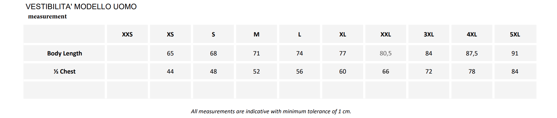 T-shirt in 100 % cotone pettinato, tessuto jersey stabilizzato, nastrino parasudore, colletto elasticizzato e ribattuto.
